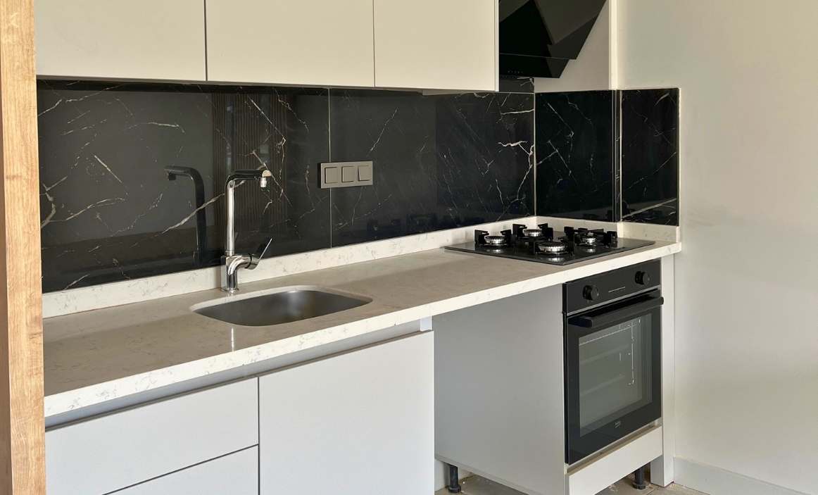 Oldukça geniş ve kullanışlı biçimde tasarlanmış olan bu daire modelimiz bir yatak odası, salon, amerikan mutfak, banyo ve bir balkondan oluşmaktadır. Yatak odası ve 7.40 metrekarelik balkonu havuz ve peyzaj manzaralı olan 1+1 dairelerimiz yeni evli çiftler, home office arayanlar ve kısa dönem kiralama yapmayı düşünen yatırımcılar için öne çıkmaktadır.